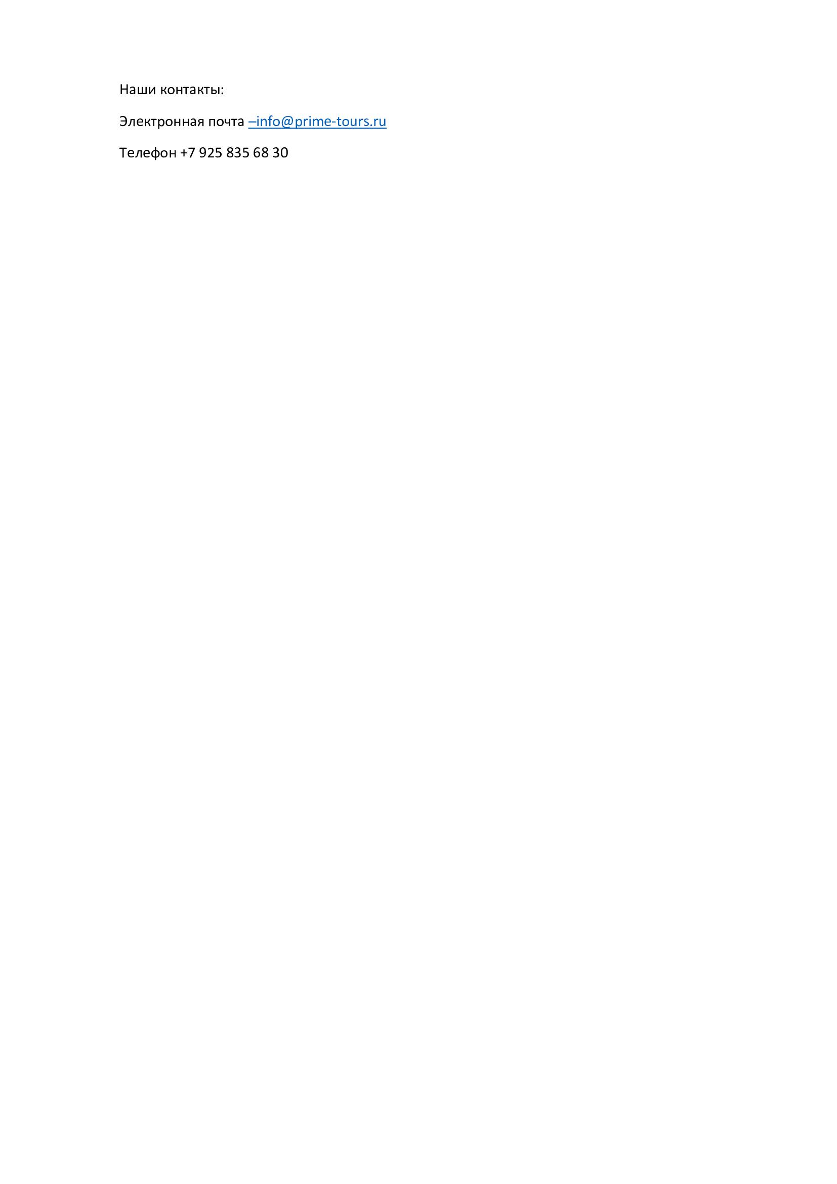 Компания Prime Tours ( "Превосходные Туры" ) была создана профессионалами турбизнеса, имеющими за плечами многолетний опыт работы. Компания ( в сотрудничестве с проверенными туроператорами) ориентирована на прием иностранных гостей и соотечественников в регионах Северного Кавказа, а также в Москве и Санкт Петербурге. Глубокое знание региона, нюансов рынка, тесные связи с гостиницами и транспортными компаниями, сотрудничество с лучшими гидами и ресторанами дает возможность организовать индивидуальный тур любой сложности и осуществить любую задачу для корпоративного выезда. Также готовы организовать путешествие нашим соотечественникам за границу. Наши цены адекватны и сервис на высочайшем уровне. Приглашаем к сотрудничеству!